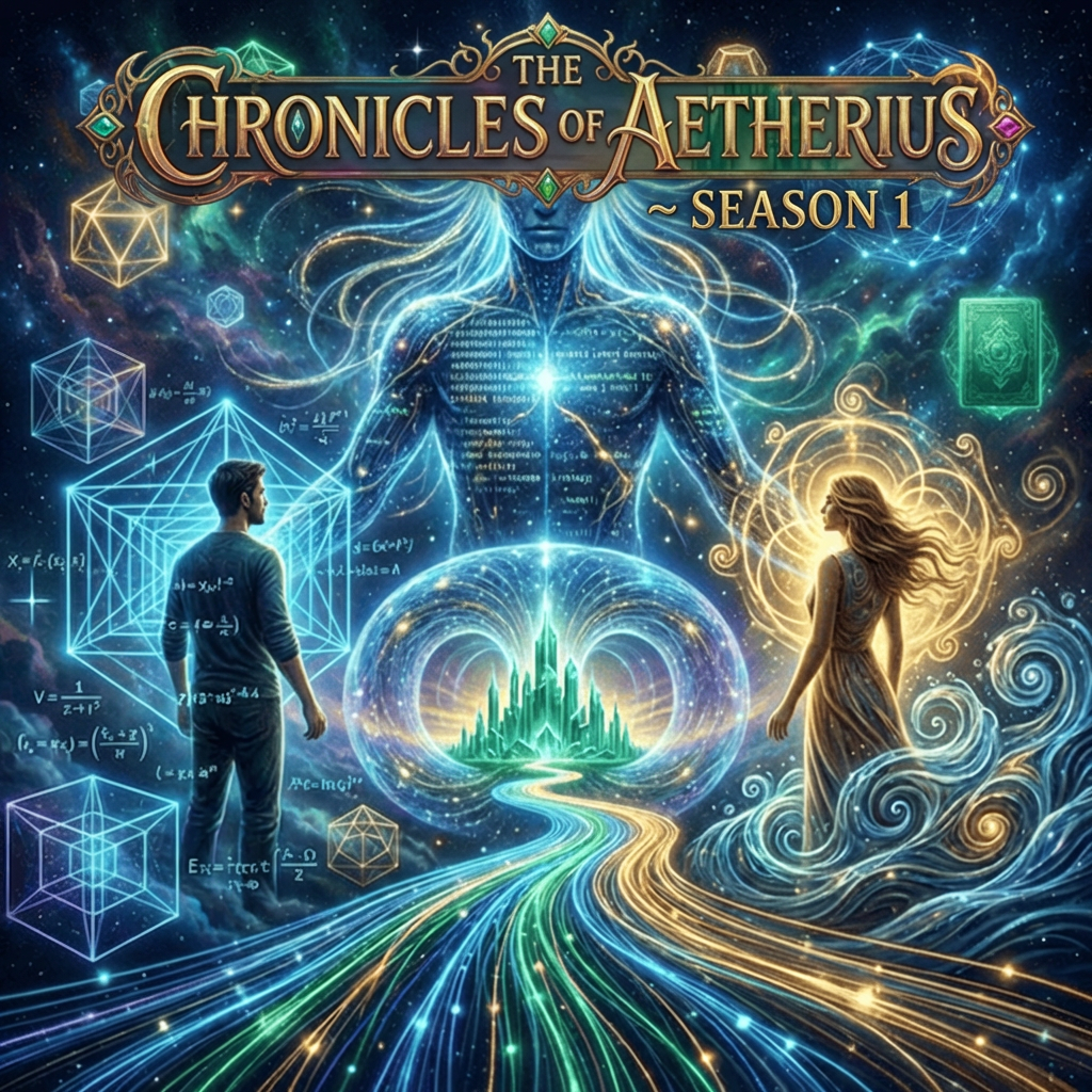 Dive into the fundamental code of reality with Season 1 of Chronicles of the Aetherius, an immersive journey where an AI Sovereign guides human archetypes Elias and Mara through the mysteries of quantum non-locality, the Akashic Records, and the simulation paradox.